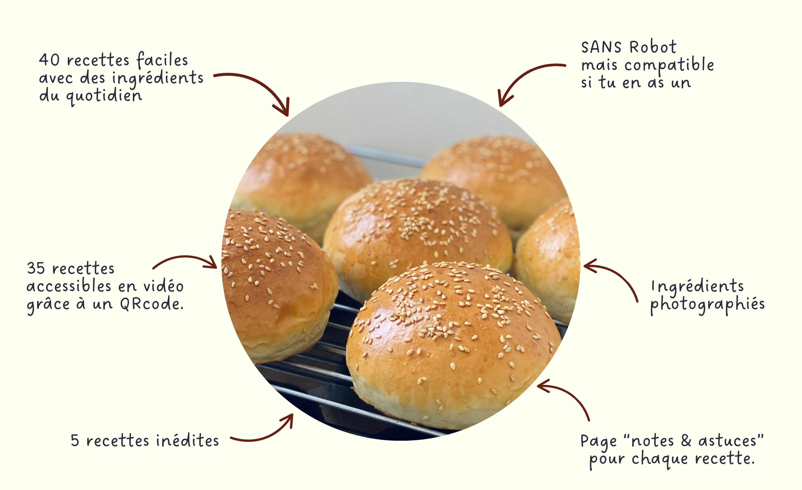 - Vidéo à portée de main : un QR code renvoie à la vidéo de la recette pour suivre le bon geste en temps réel.